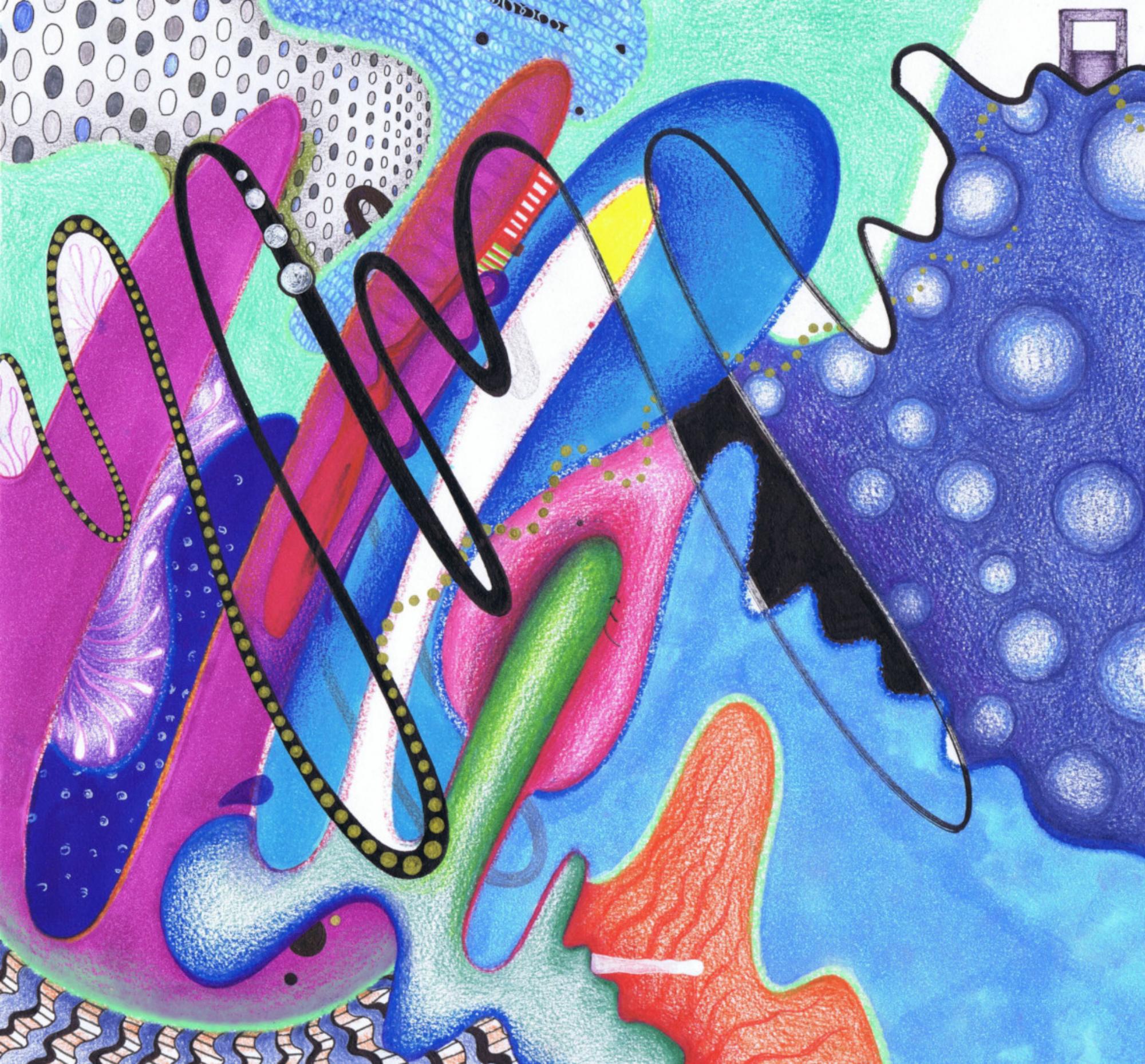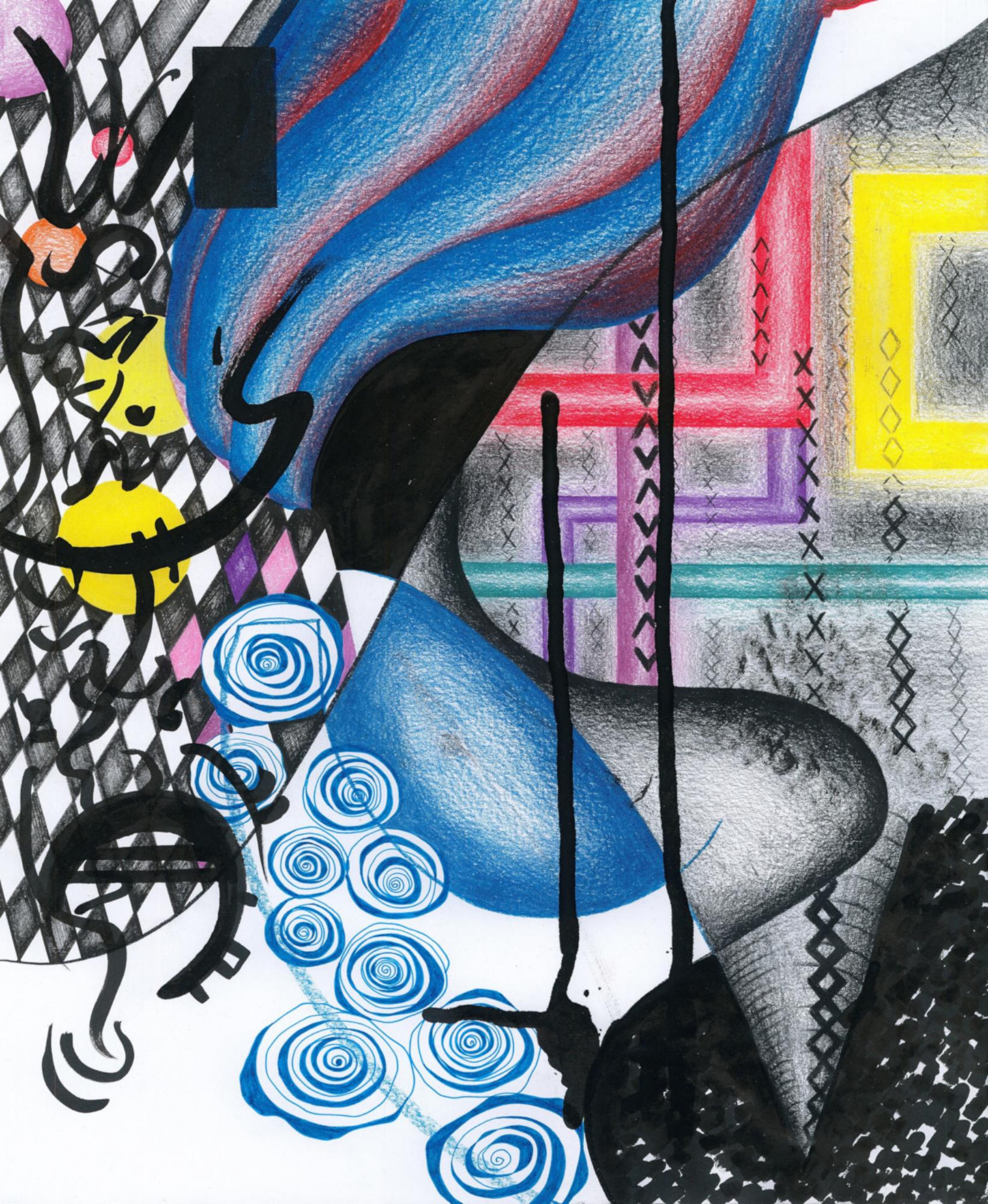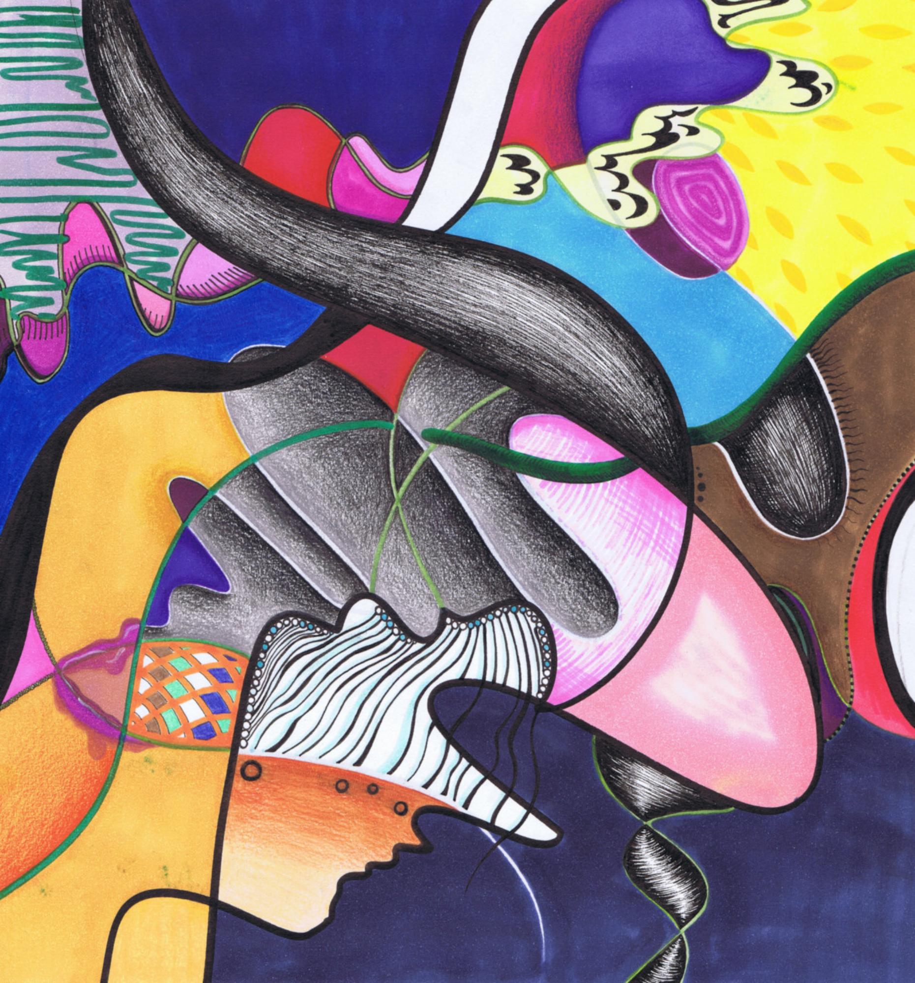 Handzeichnung in Mischtechnik (Marker, Fineliner und Buntstifte) auf Papier_2024_31,3x29,7cm Gewinner Christine Dobler Grafikpreis 2024