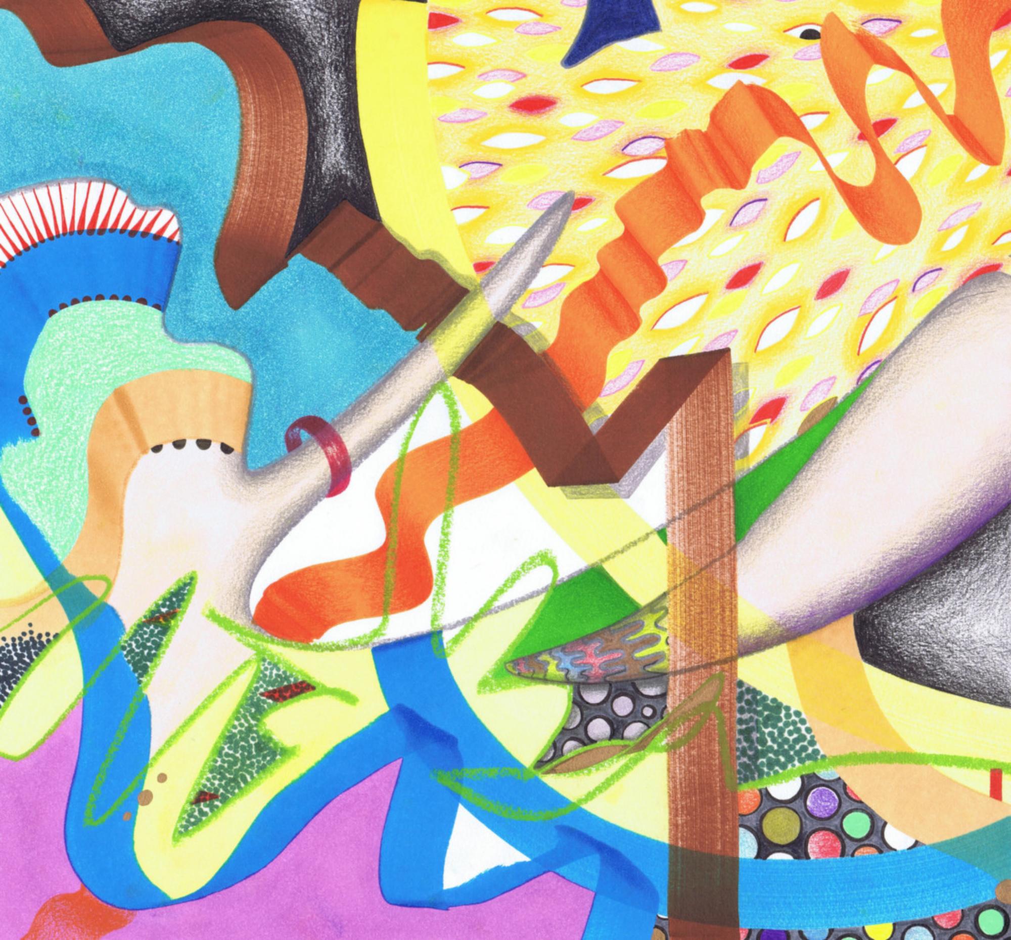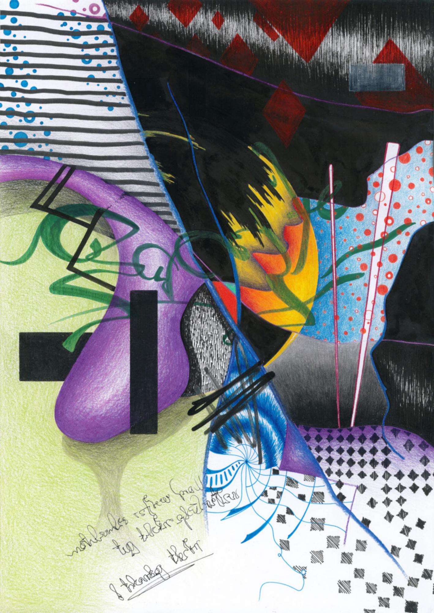 Handzeichnung in Mischtechnik (Buntstift, Bleistift, Marker, Fineliner und Lackstift) auf Papier_2023_36x29,7cm