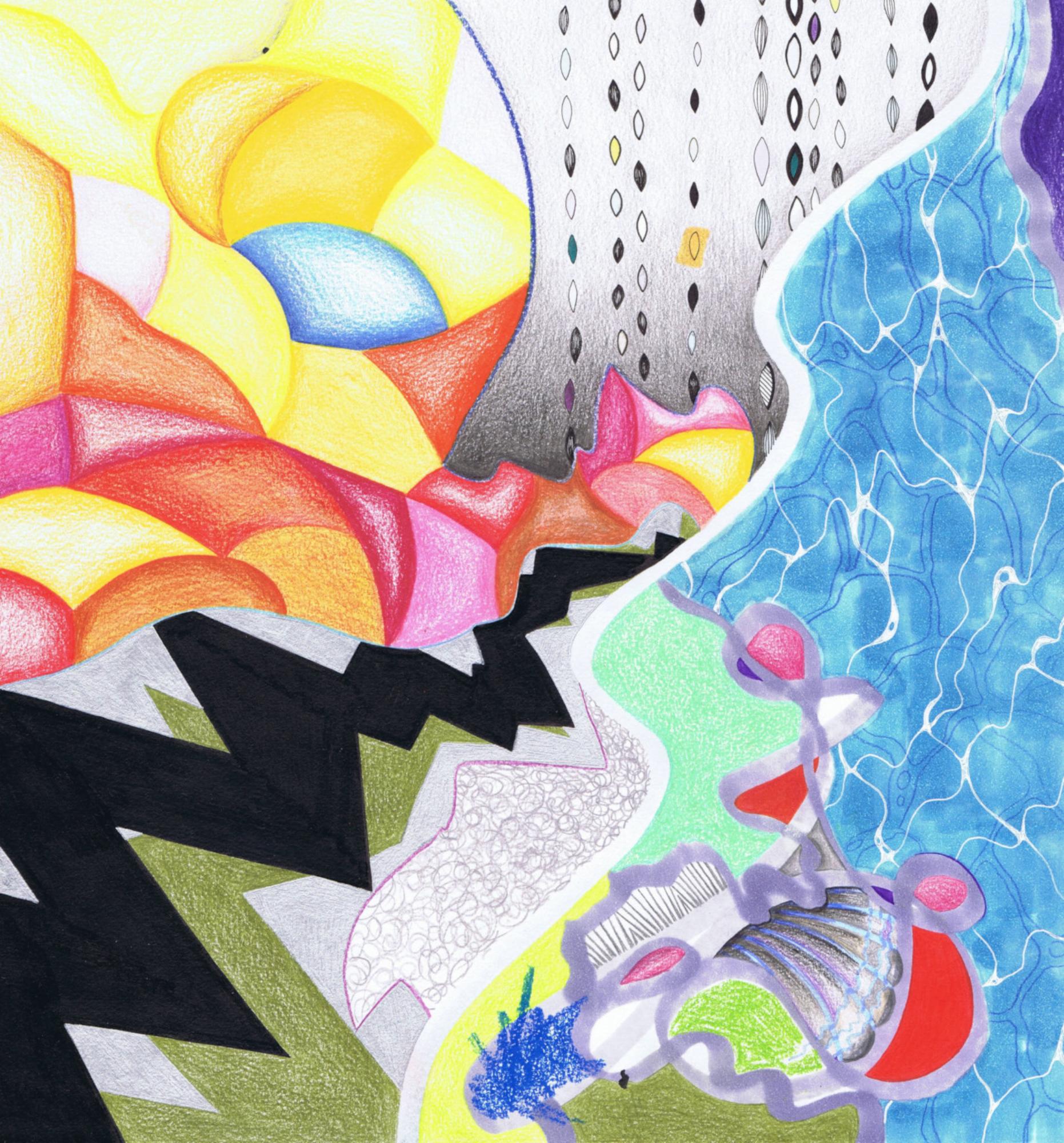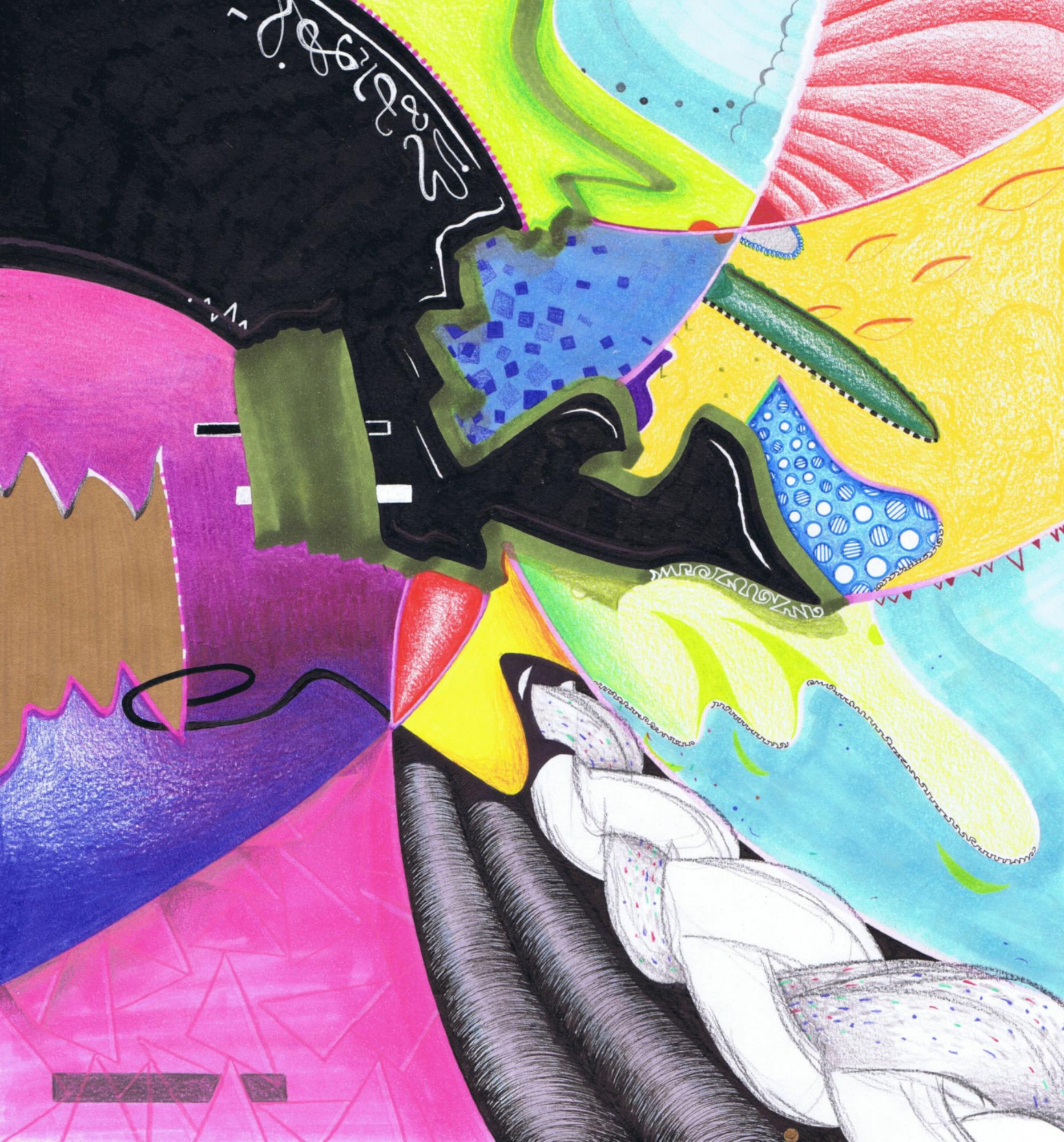 Handzeichnung in Mischtechnik (Buntstift, Marker, Fineliner und Gelstift) auf Papier_2024_31,3x29,7cm
