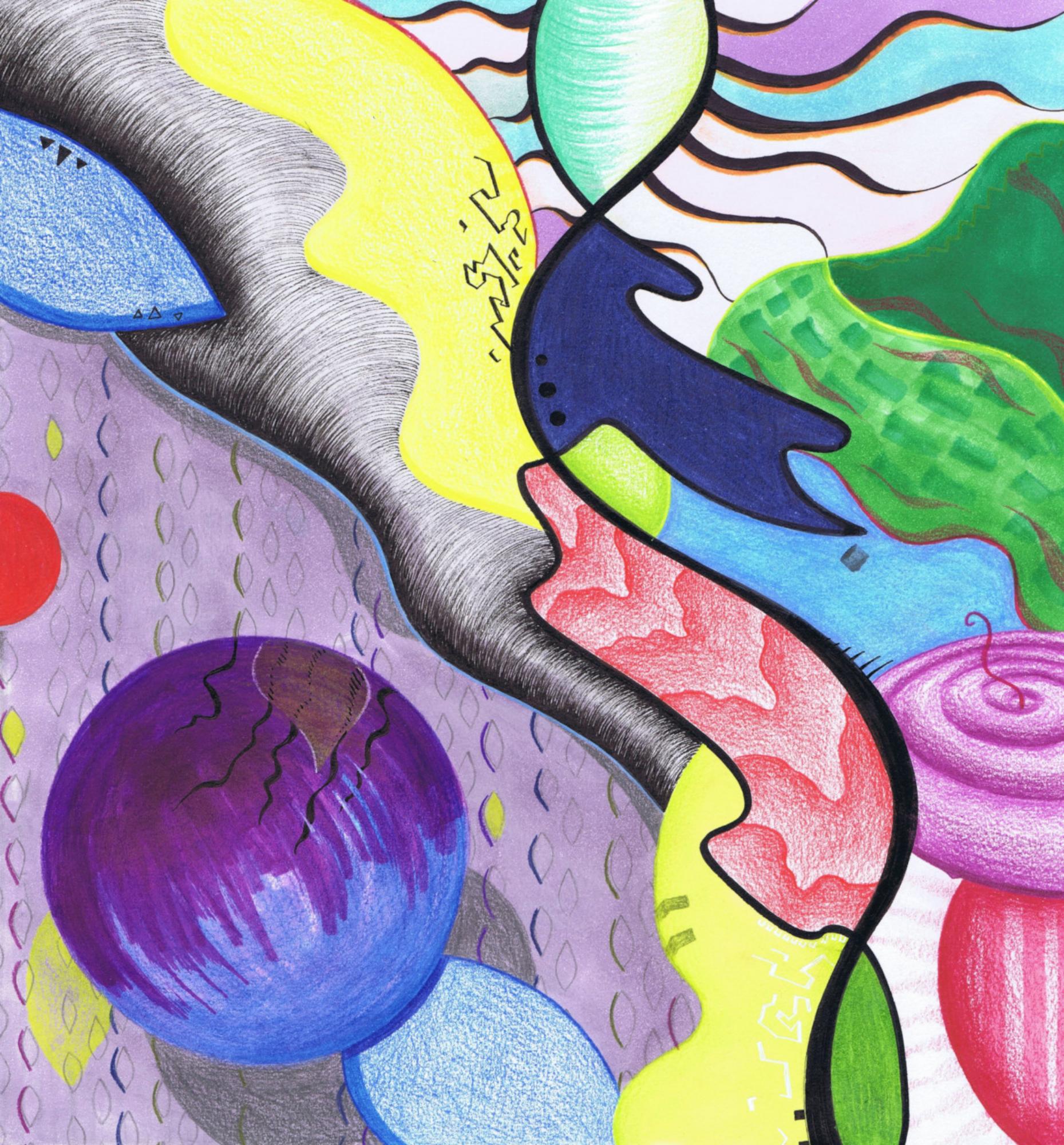Handzeichnung in Mischtechnik (Buntstift, Marker, Fineliner, Lackstift und Wachsmaler) auf Papier_2024_29,7x31,3cm