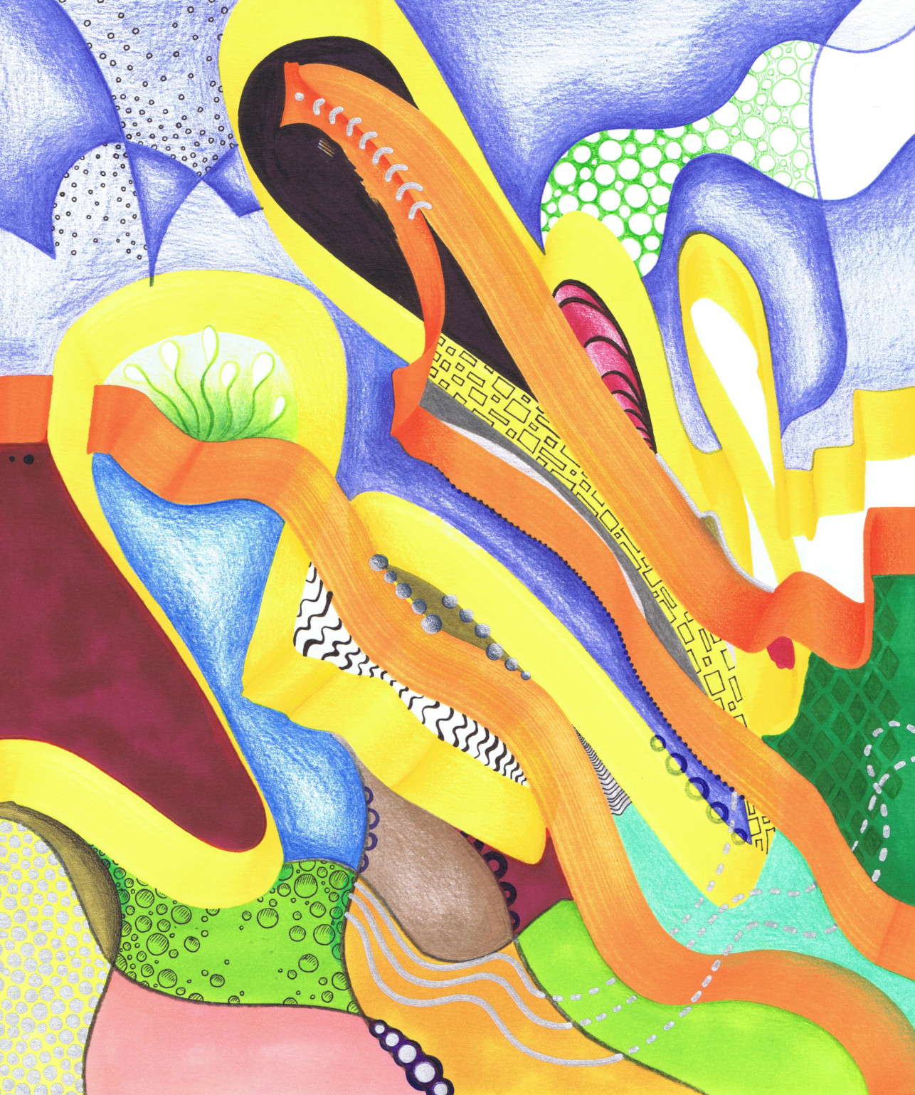Technik: Buntstift, Fineliner, Marker und Lackstift auf Papier