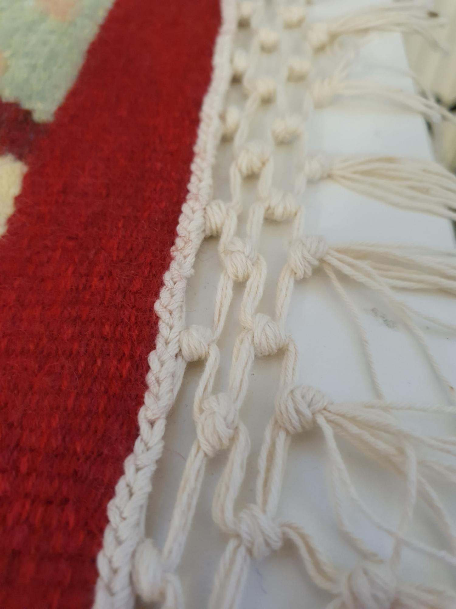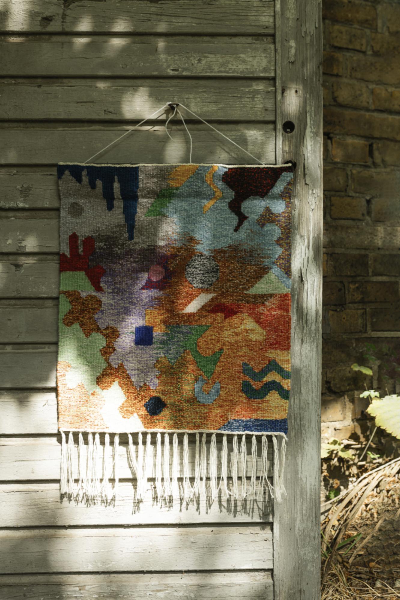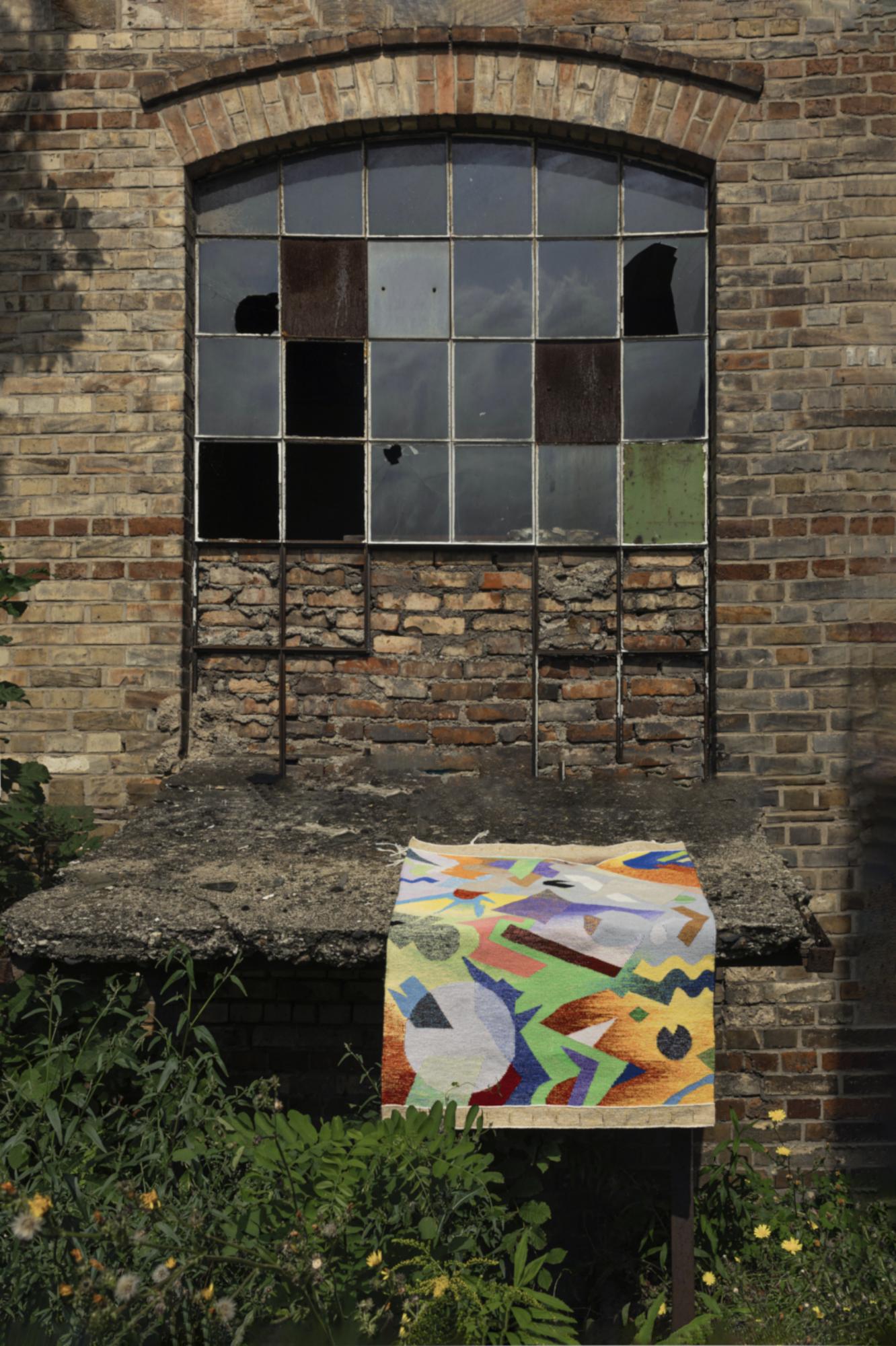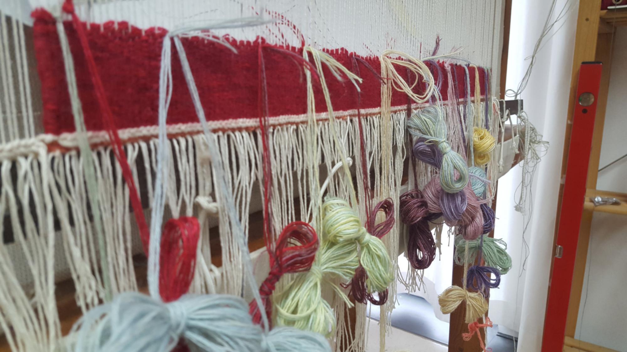 Beim Weben wird jeder Faden bewusst gesetzt, die Fläche und das Bild bauen sich von unten nach oben auf. Deshalb wirkt der Teppich nach der Fertigstellung nicht nur als Bild, sondern bietet von Nahem viele Details, die von seiner Entstehung erzählen.