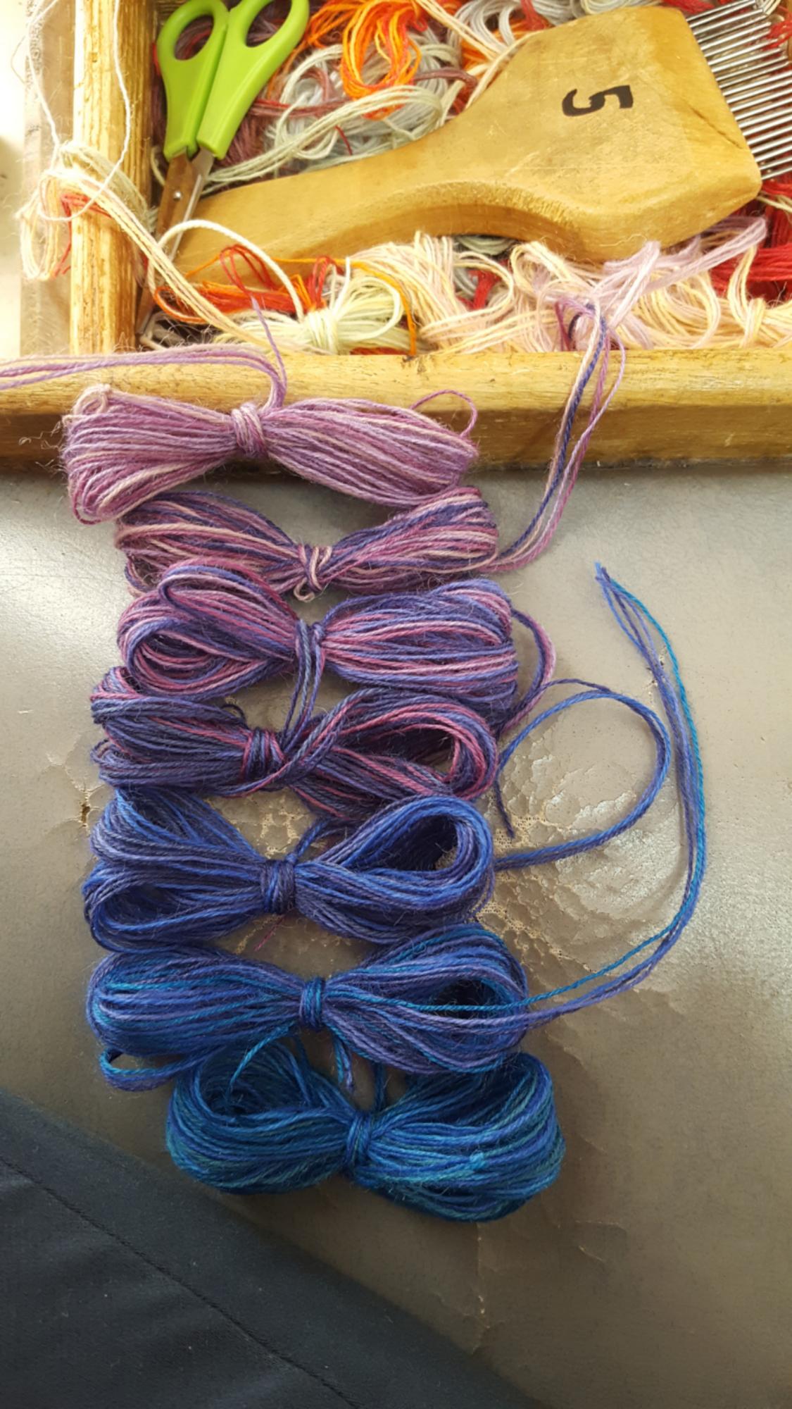 Das Experiment mit Farbe und Fläche steht im Fokus meiner Bildteppiche. Beides sind große Begriffe, die ich mithilfe der technischen Eigenheiten der Weberei untersuche. Zum Beispiel mische ich eine Farbe immer aus mehreren verschiedenfarbigen Fäden. Mischungen sorgen für eine natürlich Farbtiefe, ohne dass die Leuchtkraft der einzelnen Farben verschwindet, weil jeder Faden von Nahem erkennbar bleibt. Diesen Effekt nutze ich, um Kontrast innerhalb einer Farbfläche oder ein Rauschen in der Farbe zu erzeugen. In Kombination mit anderen gestalterischen Mitteln, wie harten oder unterschiedlich fließenden Farbverläufen, bietet sich mir die Möglichkeit jede Fläche individuell zu gestalten.