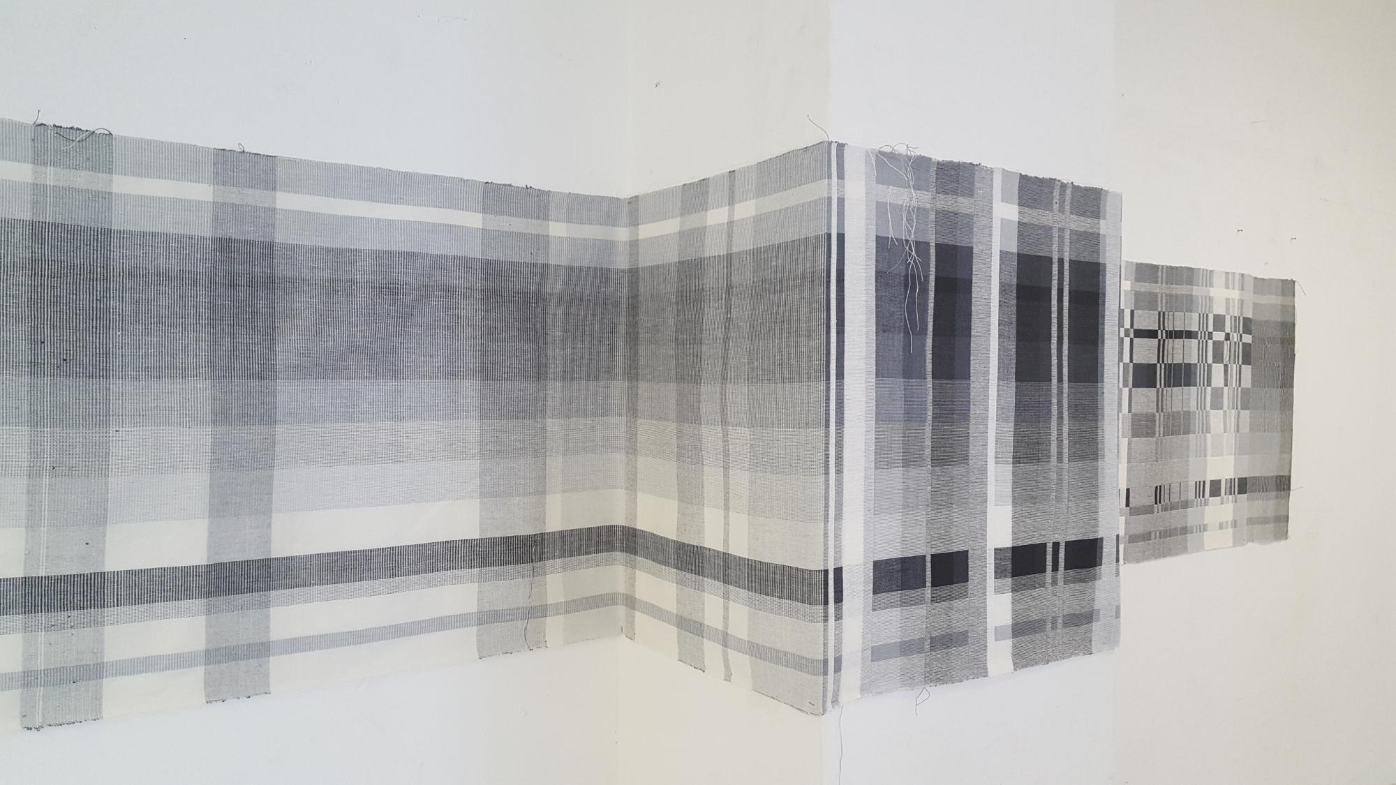 Bei meinen großen Geweben geht es mir darum, Flächen zu beleben, die normalerweise übersehen werden. Gerade längere Wände wie Flure oder Versammlungssäle, die mit vielen kleineren Arbeiten sehr gezogen wirken würden, möchte ich als optische Einheit betonen.